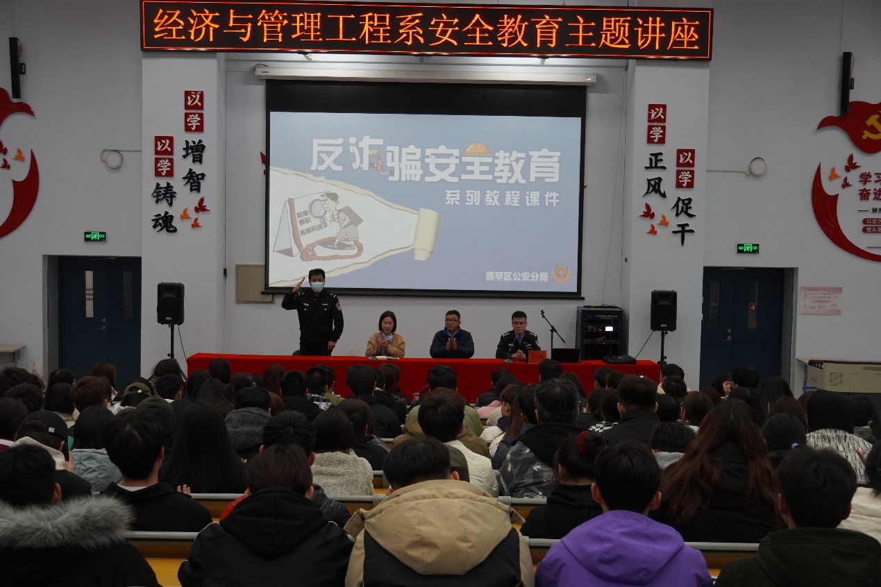 为进一步提升师生防电信网络诈骗安全意识,提高防范意识与自我保护能力,3月6日,学院安全工作处邀请呼和浩特市赛罕区公安分局大学城派出所教导员王巍,在D区109教室为经济与管理工程系学生作关于安全教育的专题讲座,安全工作处处长谢虎成、经济与管理工程系辅导员嘎力巴干与200余名学生代表共同参加讲座。
