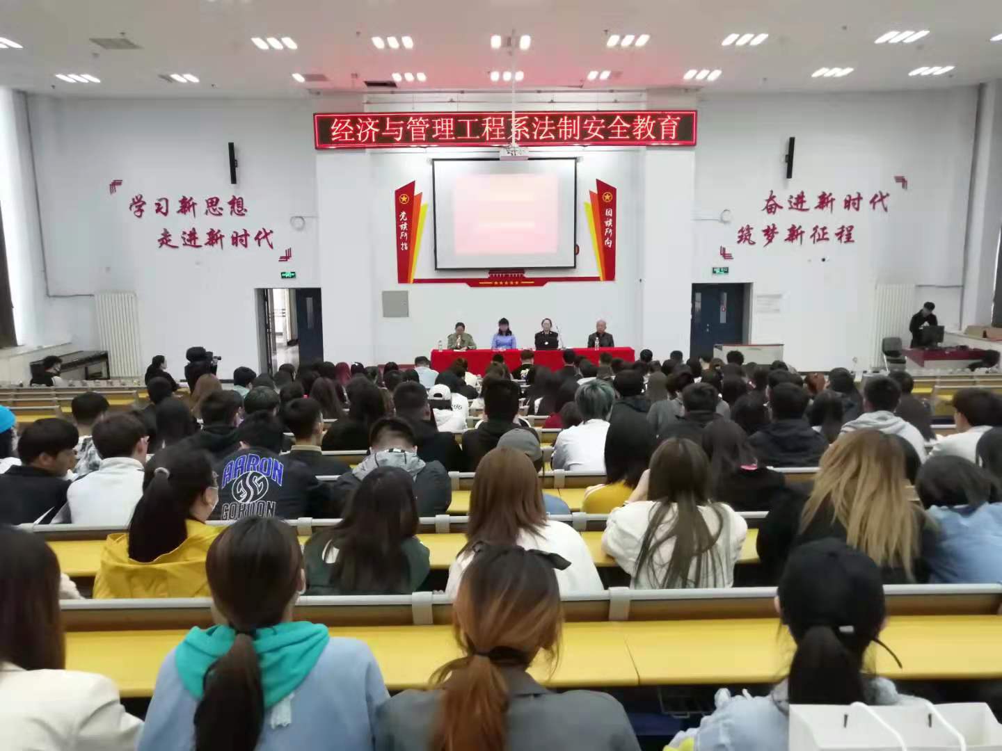 为进一步加强我院师生法治教育宣传工作,提高全体师生防骗意识,预防电信诈骗。2021年4月14日下午4:30,安全工作处邀请大学城派出所教导员杨宏岩、赵丽丽警官在D区109阶梯教室为经济与管理工程系2020级全体学生做《交通安全》知识讲座。出席本次讲座的还有安全工作处副处长刘茂、经济与管理工程系副书记寇莹、经济与管理工程系团学副书记冯叶。