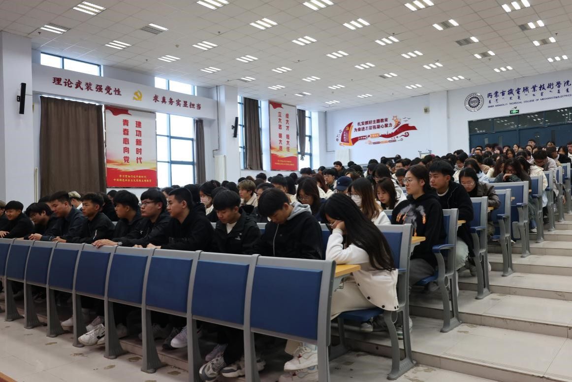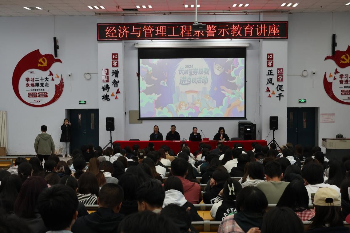 为增强学院师生法治意识,预防犯罪,促进校园和谐,推动法治社会建设,2024年10月14日,安全工作处为经济与管理工程系开展警示教育专题讲座。本次讲座由长城证券股份有限公司呼和浩特锡林南路证券营业部合规总监蔡雪燕、呼和浩特第三监狱一级警长陈伟主讲,安全工作处处长谢虎成参加。讲座由经济与管理工程系学生党支部书记嘎力巴干主持,覆盖学生500人。