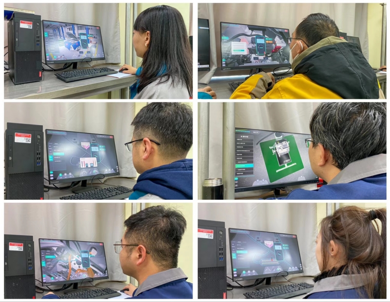 参赛教师积极参与赛前培训,认真练习备赛。正式比赛中,各组老师都认真的完成了教学软件操作流程,并提供实时问题解答,逼真、立体的表现形式让抽象的车辆检修过程形象地演示出来。