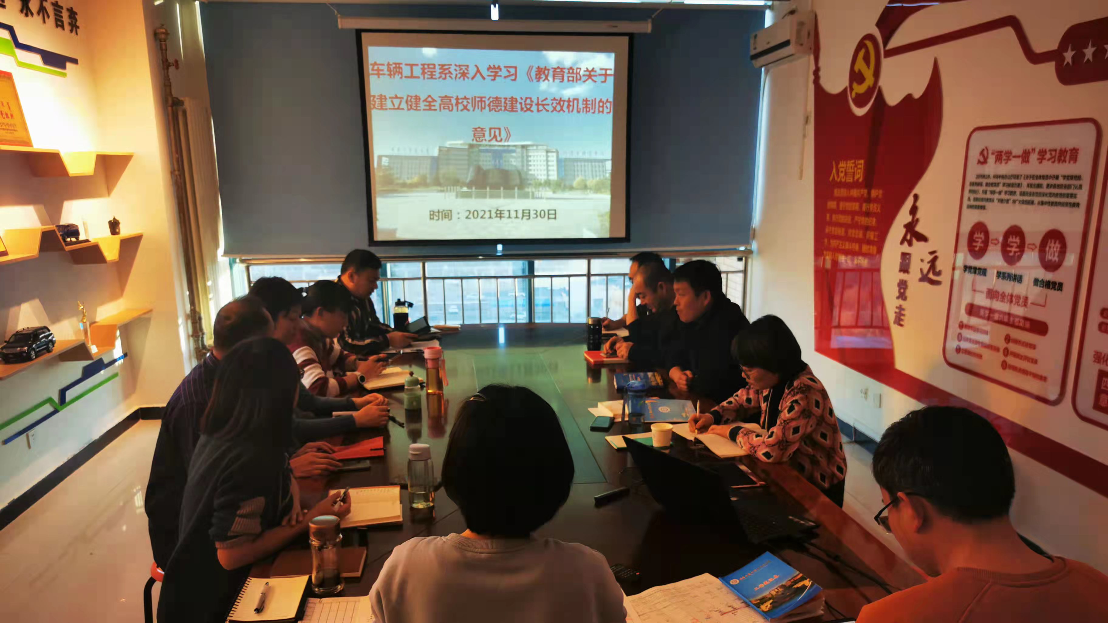 为进一步落实学院《关于切实做好师德失范违纪情况以案促改工作的方案》,依据《内蒙古机电职业技术学院车辆工程系关于深入开展学术规范建设与学术道德教育的实施方案》,2021年11月30日16:00组织全体教师学习《教育部关于建立健全高校师德建设长效机制的意见》《中华人民共和国高等教育法》《中华人民共和国教师法》,此次学习会由车辆工程系党总支书记、主任吴政主持,车辆工程系全体教师参会。