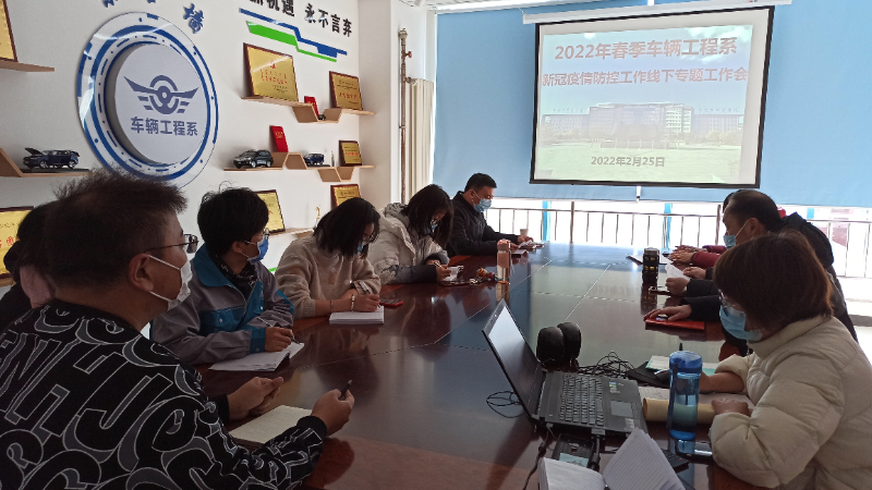 为进一步落实学院及上级部门关于新冠疫情防控工作相关部署,车辆工程系于2022年2月25日9:00召开关于2022年春季新冠疫情防控工作线下专题工作会,车辆工程系党总支书记、主任吴政主持此次会议,副主任于彭涛、副科级以上干部及部分教师代表线下参会,会前对会议室进行了全屋医用酒精消毒处理,参会人员全程佩戴口罩,间隔1米就坐,系属其他教师线上全程参会。