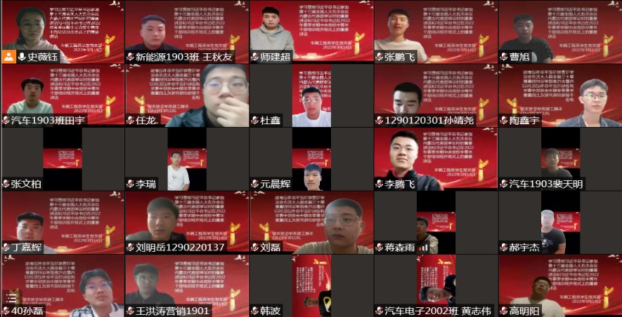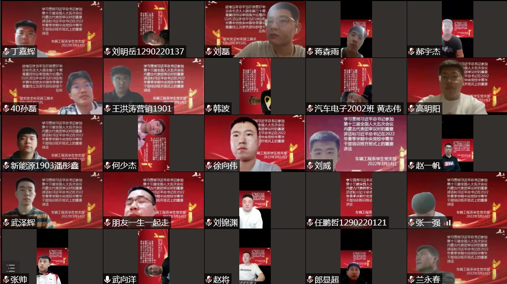 根据学院党委、车辆工程系党总支关于全国“两会”精神的学习安排,车辆工程系学生党支部于3月14日下午18:00组织召开深入学习贯彻“习近平总书记参加第十三届全国人大五次会议内蒙古代表团审议时的重要讲话”和“习近平总书记在2022年春季学期中央党校中青年干部培训班开班式上的重要讲话”专题学习会,此次专题学习会议由学生党支部书记史薇钰主持,学生党支部全体党员线上参加了学习。