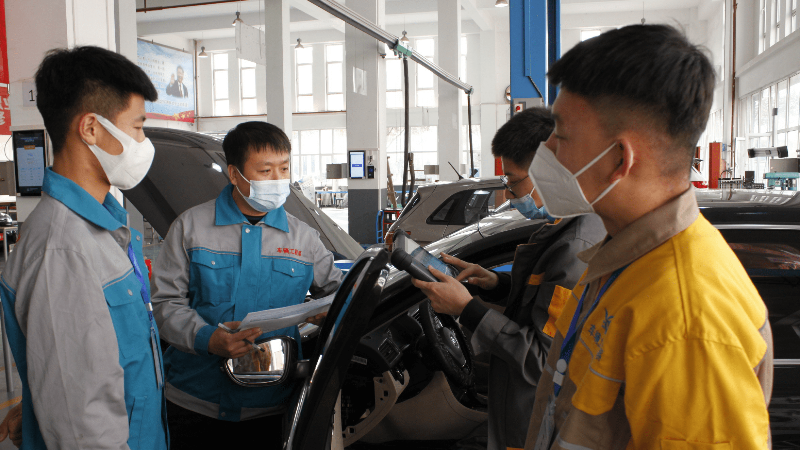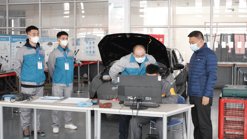 车辆工程系各专业将考核内容有机融入线上线下混合课程教学,积极开展在线学习、强化训练和模拟考核,培养学生分析故障、查找故障、解决故障的实践技能。9月完成报名工作后,培训教师布仁、于彭涛、乔羽楠、韩冰、赵文娟利用课余时间组织参评学生整合专业知识,提升识图能力。10月11-25日,学生在实训室分组进行强化训练,进一步查找不足。10月26日,车辆工程系考评员老师布仁、乔羽楠、贾雨航对参评学生进行模拟考核,以保障考核任务顺利完成。