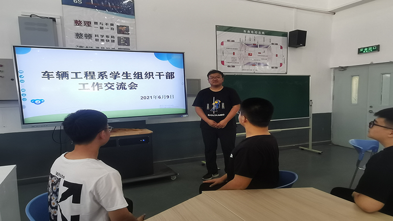 为加强学生干部队伍建设,提高学生干部的综合素养和工作能力,在学生干部中营造积极向上的氛围,车辆工程系团学办公室于2021年6月9日召开学生组织干部工作交流会。车辆工程系团学办公室副主任贾雨航、学生组织(学生党支部、团总支、学生会、社团)全体干部参加本次交流会。本次学生组织干部工作交流会先后开展了“学习百年党史,强化榜样引领作用”、“稳定校园安全,筑牢安全防线”、与“未雨绸缪,防患未然”三个专题。