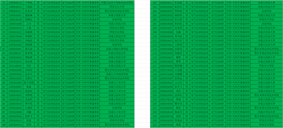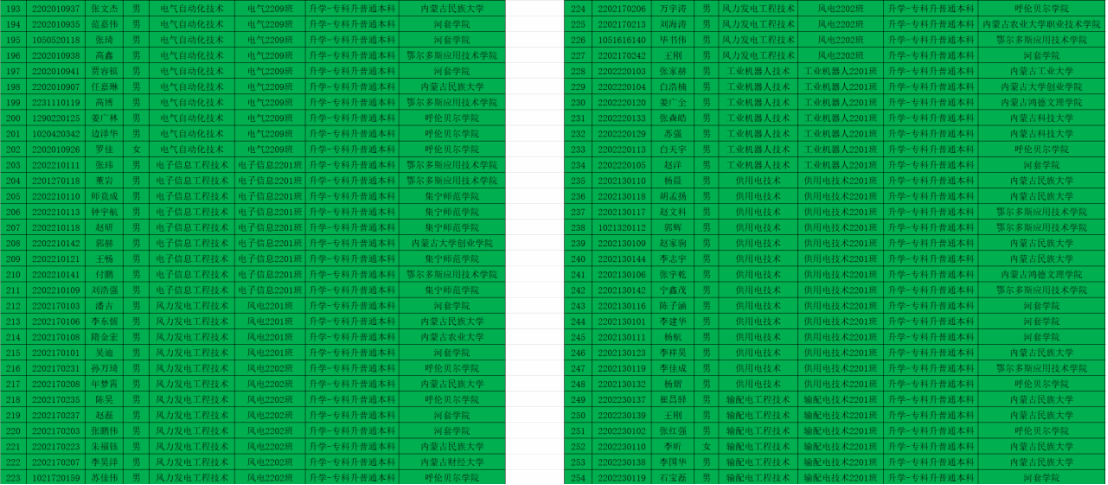 电气工程系2025届毕业生共有896名,289名报名参加专升本考试,最终有254名学生被内蒙古工业大学、内蒙古农业大学、内蒙古科技大学等15所本科院校成功录取。