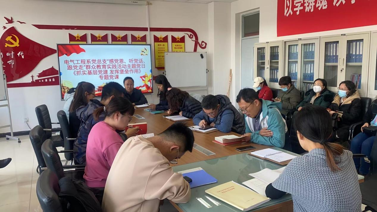 根据“感党恩、听党话、跟党走”党的群众路线教育实践活动和学院党委开展星级化亮晒比、创建坚强堡垒“模范”支部工作要求,电气工程系党总支认真贯彻落实上级党委相关决策和部署。为使系部教工进一步深入了解基层党组织建设的重要性、发挥党支部在凝心聚力、推动发展、服务群众的战斗堡垒作用,电气工程系党总支书记范哲超以“抓实基层党建 发挥堡垒作用”为题作专题党课报告,电气系全体党员、教师参与聆听书记讲党课。