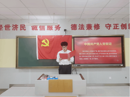入党宣誓仪式伊始,董海龙宣读了新发展党员名单并对全体新党员表示热烈的祝贺并强调,新党员要继续加强党的基础理论学习,在实际生活中也要做到言行一致、积极担当作为,展现学生党员的特有精神气质和青春风貌。