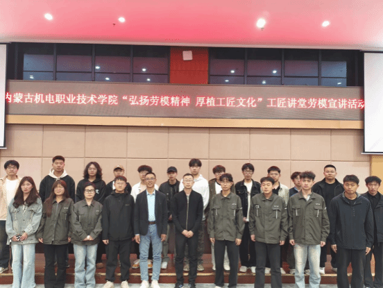 2025年5月7日晚19时,内蒙古机电职业技术学院图书馆二楼报告厅内灯火通明,由学院工会主办,电气工程系、车辆工程系承办的以“弘扬劳模精神 厚植工匠文化”为主题的工匠讲堂宣讲活动成功举办。活动特别邀请到中国航天科工六院杰出代表郑朝阳大师,为两系师生带来了一场别开生面且意义深远的劳模主题教育讲座。