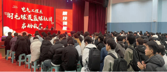 2025年11月6日,在文体中心内、气氛热烈,羽毛球社团与篮球社团启动仪式在此正式拉开帷幕。电气工程系团学办公室老师及数百名热爱运动的学子齐聚一堂,共同见证两大体育社团的全新启航。