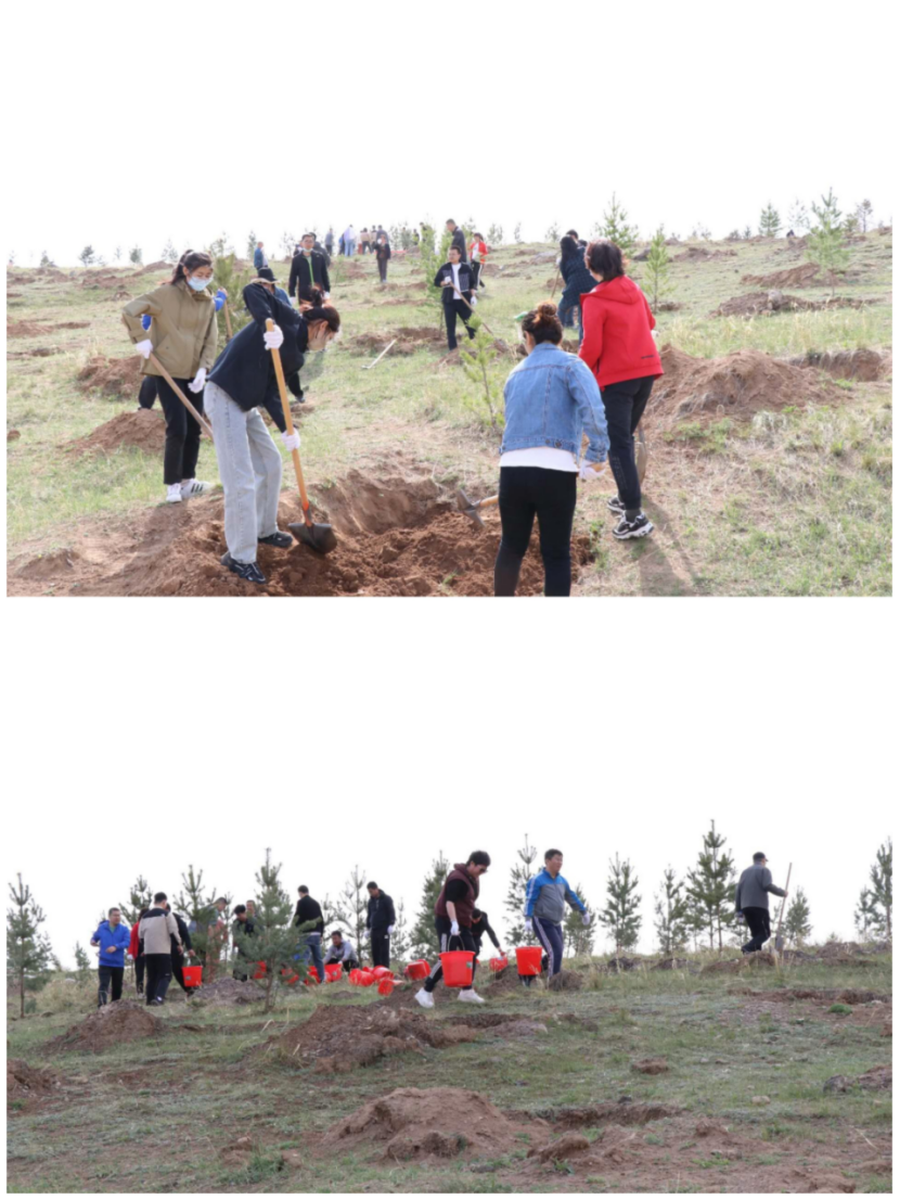 参加植树人员共同前往西五十家村的劳模林进行植树活动,植树现场热火朝天、干劲十足,学院教职工们手持铁锹和水桶,合理分工,三五一组,团结协作,运苗、栽苗、扶苗、培土、浇水,有条不紊、配合默契,将一棵棵寄托美好祝愿的树苗栽种下去,在汗水劳作中感受劳动的美好,在协作配合中体会集体劳动的快乐。
