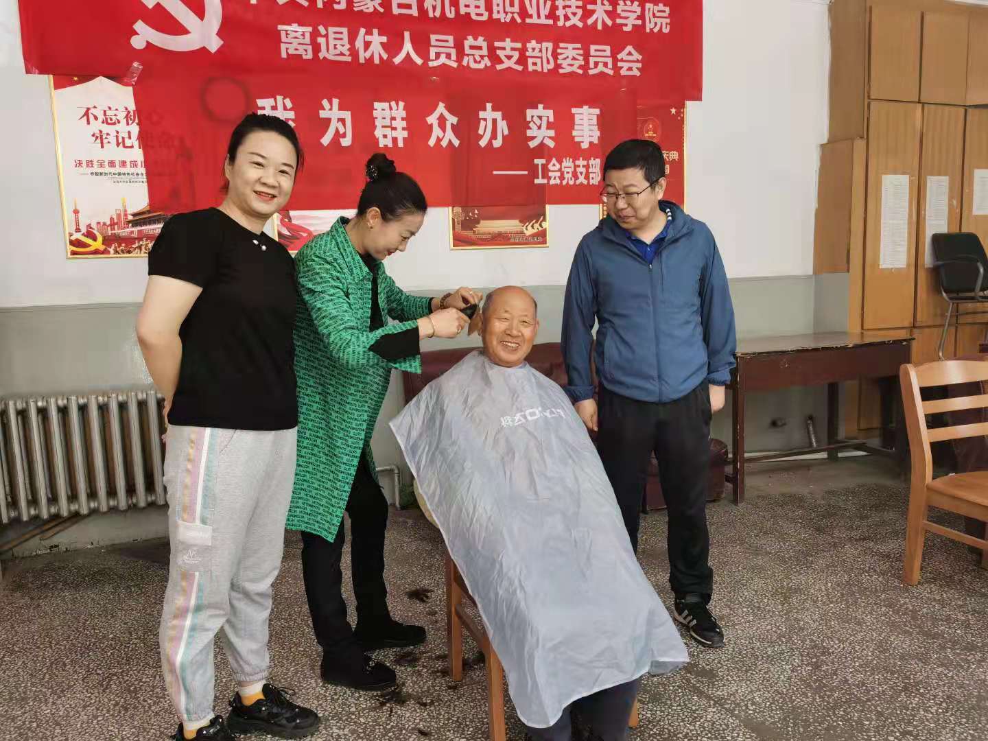 6月5日, 离退休人员管理处党支部、后勤管理服务党支部、工会党支部共同在东区老干部活动中心开展了“我为群众办实事”--为退休老干部理发活动。