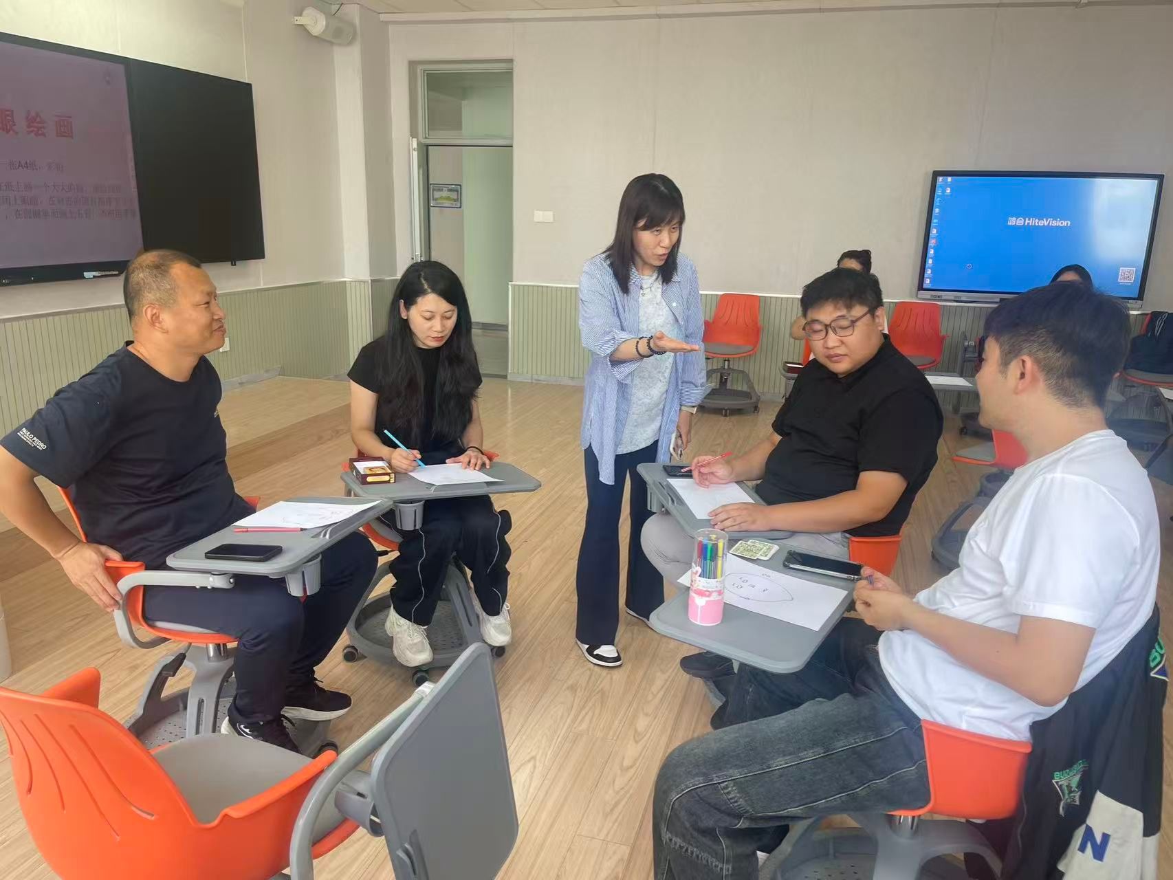 李丽霞老师组织老师们参与了“蒙眼绘画”、“