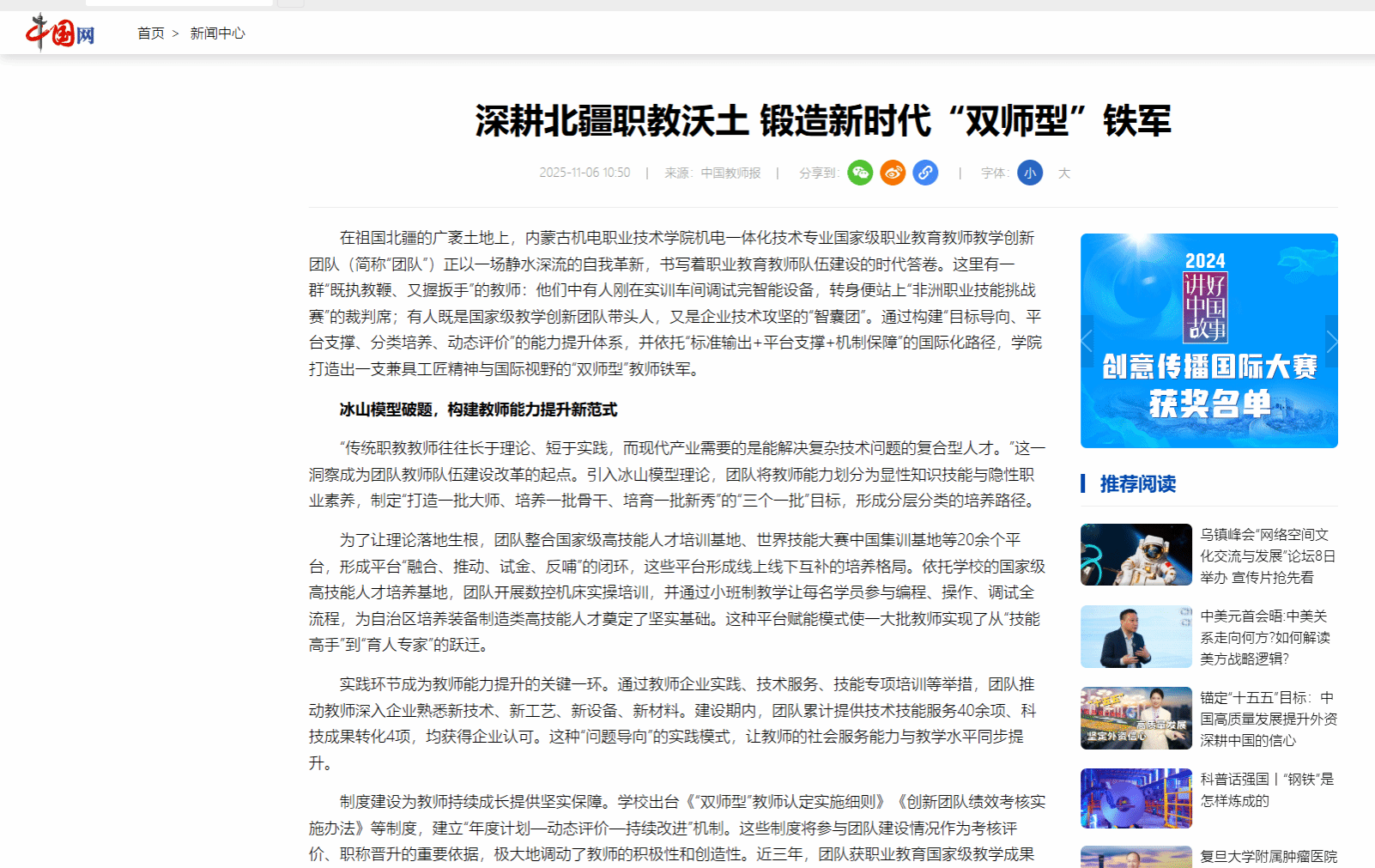 内蒙古机电职业技术学院:技能大赛传捷报 校企协同育新人