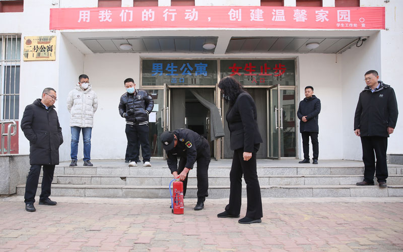 呼和一行分别实地查看了食堂后厨、出餐窗口区、就餐环境区、宿舍楼道、学生寝室等区域,重点对食品安全、消防安全等重要环节的安全措施落实情况进行全面摸排,并进行消防演练,做到不漏掉一个安全环节,不放过一个细节。
