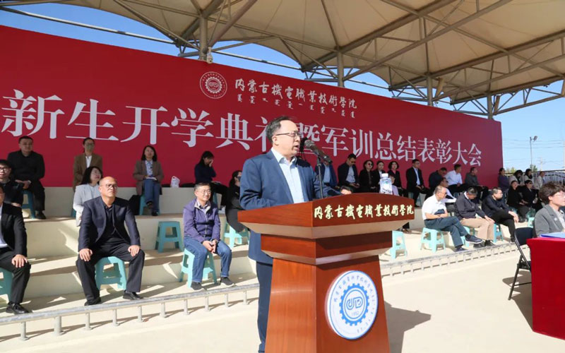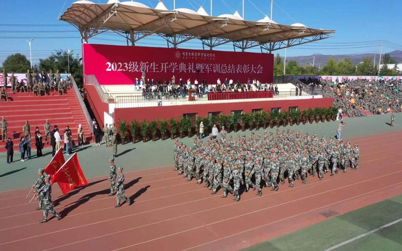 李文科代表学院向给予我院军训工作大力支持的中国人民解放军95838部队、呼和浩特市赛罕区人民武装部和承训的50名教官表示衷心感谢并致以崇高敬意,向2023级全体新同学表示热烈欢迎。同时,希望同学们以时代之责立志,用家国情怀擦亮青春底色;以求真之心立学,用过硬本领锻造青春担当;以奋斗之姿立行,用坚韧意志铸就青春理想,珍惜这承载青春与梦想的大学时光,以梦想为帆、以奋斗为桨,把国家需求、时代使命、人生理想与个人奋斗交汇在这里,为今日之中国、为未来之中国铸就本领力量,担当历史使命。