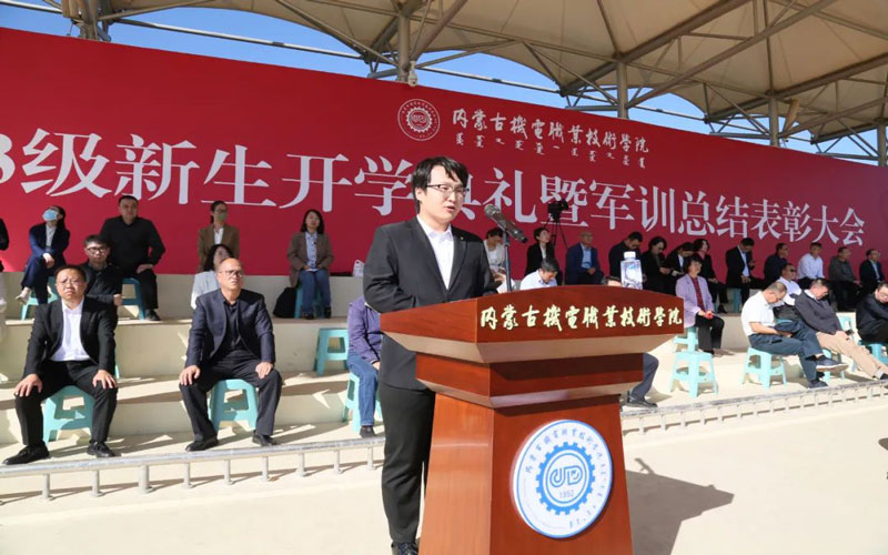 能源与材料工程系热能动力工程技术2301班任钊汗、电气工程系供用电技术2101班刘绍峰、信息工程系党总支副书记舍乐莫分别作为新生、老生和教师代表进行发言。
