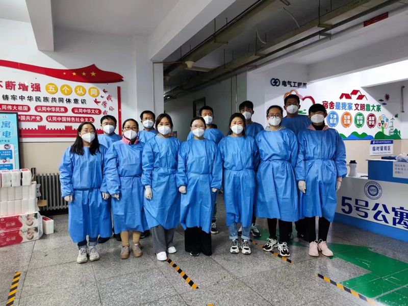 电气工程系返校的21名教师中,有18名是共产党员。他们以身作则、坚守岗位,勇担当、善作为,严格按照学院、系部要求,全面落实联防联治措施,带领全系师生群防群治,坚决阻断疫情,确保师生身体健康、校园安全稳定。系部的辅导员群体是防控一线的主力军,他们一丝不苟地执行命令,坚定站在校园抗疫最前线。学校封闭管理期间,21名辅导员全身心投入工作、全天候陪伴学生,除做好网络思政教育、健康状况跟踪、学生日常管理等常规工作外,还深入到宿舍与同学们谈心谈话,时刻关注着同学们的学习情况和身心健康。用实际行动解决学生学习、生活中遇到的困难,真正做到“急学生之所急、想学生之所想、解学生之所需”,真正将爱与服务落到实处。在核酸采集现场、在宿舍、在食堂、在深夜亮灯的办公室、在医院急诊……总之,哪里有学生,哪里就有他们忙碌的身影,哪里有需要,哪里就有他们坚守的足迹。以爱为壁垒,守护住身后的学生;以责任为武器,坚定抗疫的决心。