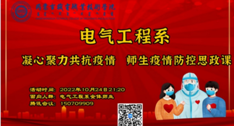 在疫情防控的关键时期,为使学生进一步认清疫情防控的严峻形势,激励全体师生砥砺同心、共克时艰的顽强斗志,凝聚全体师生共同抗疫的强大力量,系部积极响应学院号召,组织全系师生开展“凝心聚力 共抗疫情”—电气工程系师生疫情防控思政课线上直播宣讲活动。