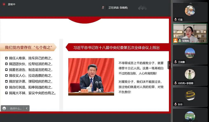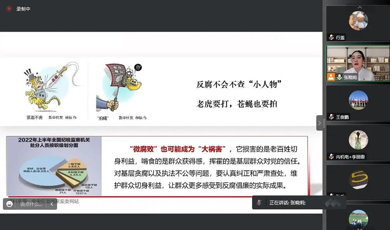 11月18日下午,我院党的二十大精神校园巡讲团成员、马克思主义教研部教师、第二届全国高校思想政治理论课教学展示暨优秀课程观摩活动二等奖获得者张晓莉开启“第一讲”,学院机关第一、二党总支,离退休人员党总支和6个直属党支部全体党员教师线上聆听。宣讲会由学院机关第一党总支书记王庆刚主持。