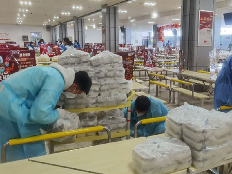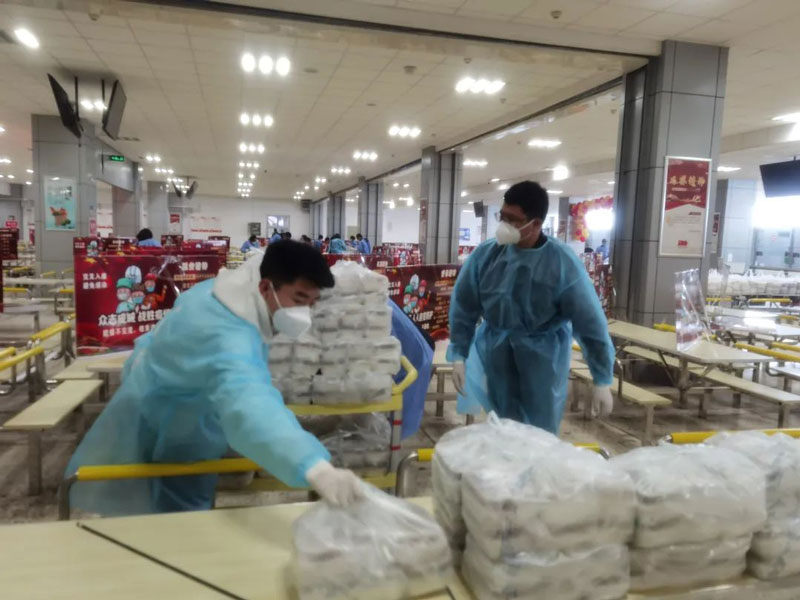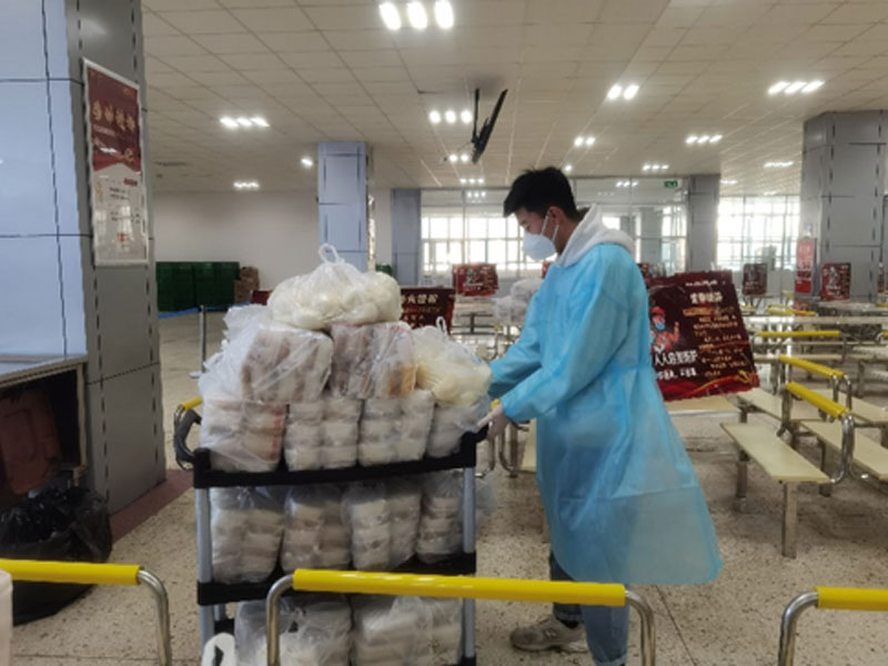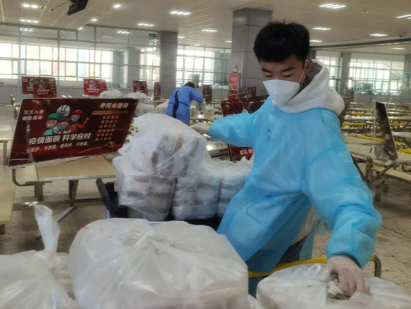 早晨不到6点,就起床去做核酸采集准备工作,为教职工、学生先后采样,直到10点多才拖着疲惫的身体去吃早餐,早饭草草了事,便又加入到送餐队伍,开始繁重的送餐工作。