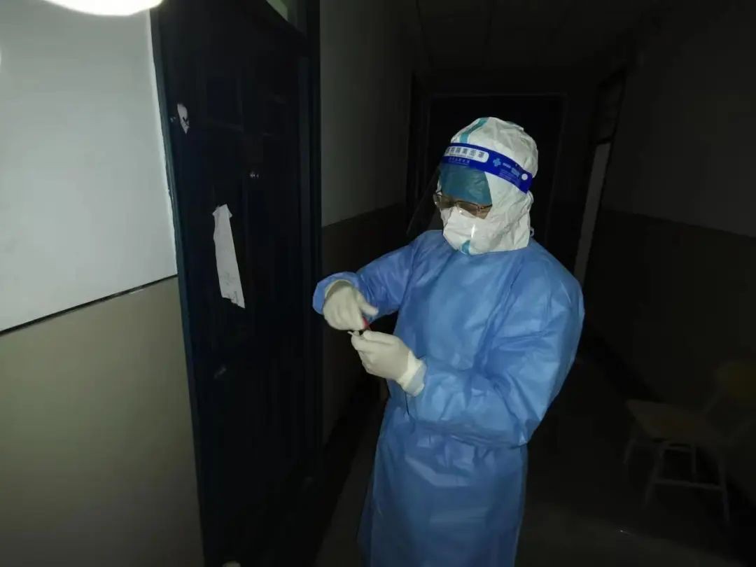就是这一句“应该的”,每天早晨天还未亮,韩秉科老师就起床穿好全套防护服,做好核酸采集的准备工作,开始为隔离宿舍的同学们进行核酸采样。准备充分、动作标准、消杀到位,这一系列娴熟的操作,如果你不知道,一定认为韩秉科老师是一名专业的医护人员!核酸采集期间不能喝水、不能吃东西,也不能去卫生间,而且大多数时间都是站着的,这样的采集工作通常要持续几个小时,直到隔离宿舍同学们全部核酸检测结束,采集样本、消杀用品、防护服等全部整理完毕,韩秉科老师才可以松一口气,拖着疲惫的身体返回临时宿舍洗漱、吃早餐。接着,又立即投入到下一项工作中,不是穿上防护服在楼宇值守,就是坐在电脑前安排核酸检测工作组的排班、值班等工作……总之,大家总是能够看见他忙碌的身影与温暖的笑容。