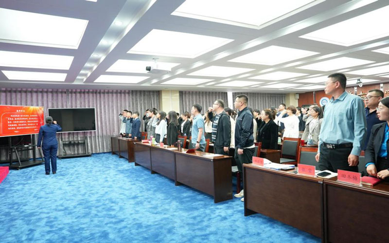 开班仪式上,教师发展中心主任王熔熔介绍本期培训班的整体安排,马克思主义学院院长郑云宏带领全体新入职教师进行宣誓。