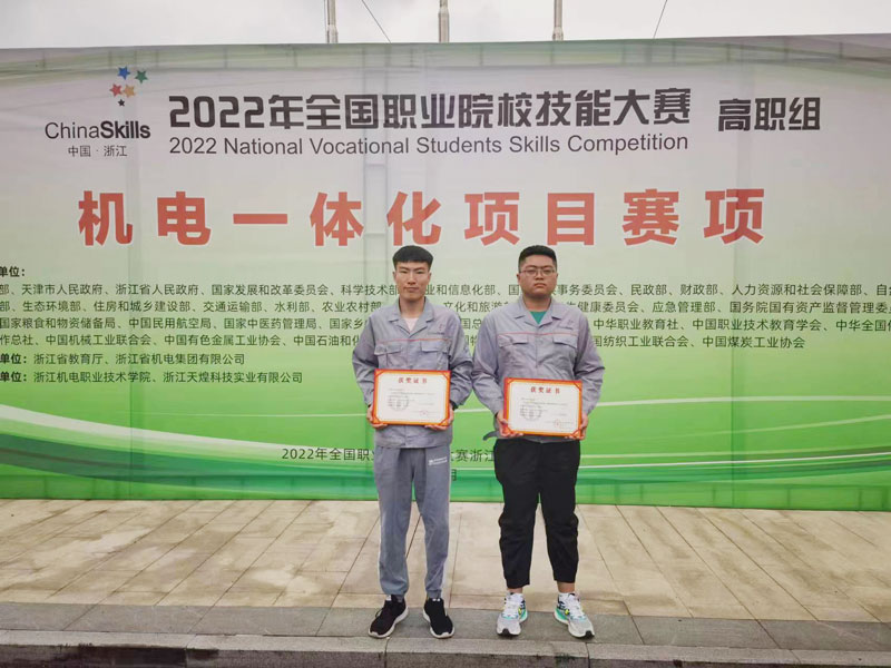 近日,全国职业院校技能大赛(高职组)“机电一体化”“数控机床装调与技术改造”赛项分别在浙江机电职业技术学院和淄博职业技术学院开赛。两项赛事中,我院机电工程系学生代表内蒙古自治区参赛,分别荣获全国二等奖1项、全国三等奖1项。其中学生王满、陈义灿( 指导教师: 机电工程系梁振威、姜明磊 )荣获“机电一体化”赛项全国二等奖,学生张文瀚、张凯( 指导教师: 机电工程系姜明磊、梁振威 )荣获“数控机床装调与技术改造”赛项全国三等奖的好成绩。