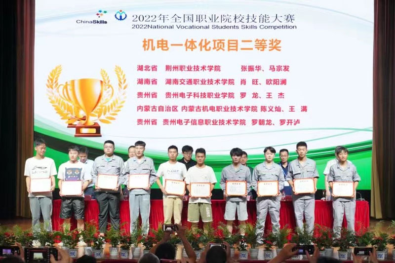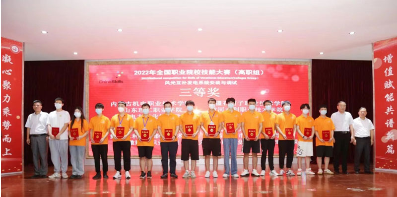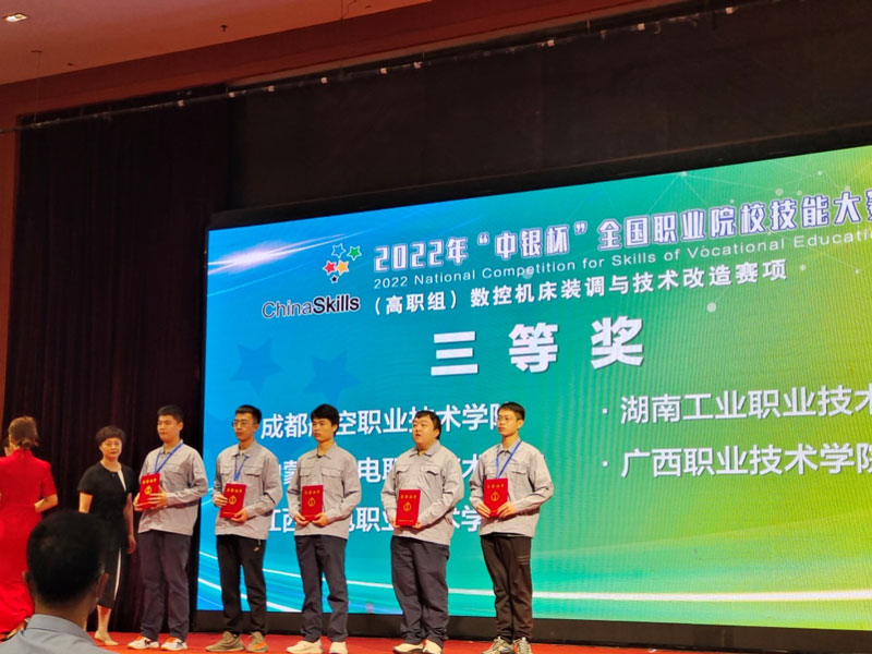 2022年我院代表自治区参加全国职业院校技能大赛9个赛项的角逐,6个赛项获奖,其中二等奖2项、三等奖4项。机电工程系左立业、王炳森同学获得“复杂部件数控多轴联动加工技术”赛项国赛二等奖;机电工程系陈义灿、王满同学获得“机电一体化”赛项国赛二等奖; 电气工程系赵维杰、刘凯文、尚文龙同学获得“风光互补发电系统安装与调试”赛项国赛三等奖;机电工程系张凯、张文瀚同学获得“数控机床装调与技术改造”国赛三等奖;电气工程系刘京圃、袁旭、刘宏基同学获得“电子产品设计及制作”国赛三等奖;电气工程系赵志杰、张洋同学获得“机器人系统集成”国赛三等奖。