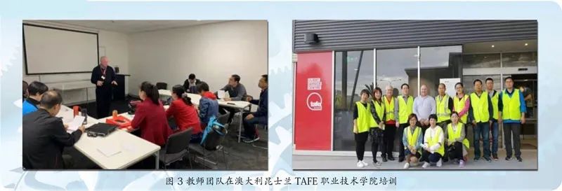 3、实施双语教学能力提升行动。采取校内培训与校外培训相结合,国内培训与国外培训相结合,线上培训和线下培训相结合等方式。聘请资深中籍英语教师和教学经验丰富的外籍教师授课,选取常用英语口语、专业授课语言、文化语言冲突等教学内容,组织青年教师脱产学习并通过考核;选派“双师型”教师共14名,分批次派出到德国、美国、澳大利亚等国家,学习先进职业教育理念及优质教学资源建设,开拓团队教师国际化视野,切实提升教师团队双语教学能力。