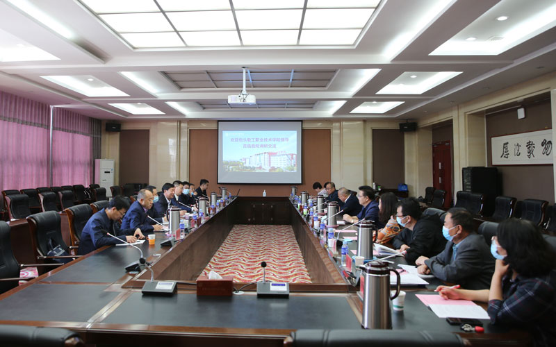 为加强兄弟院校间的交流合作,近日,包头轻工职业技术学院党委书记邵文祥,党委副书记、院长冯银虎及相关职能部门负责人一行8人来到我院进行调研交流。学院党委书记李永义,党委副书记、院长李文科,党委副书记高军,党委委员、副院长郝俊、李文博出席并与来宾进行了座谈。