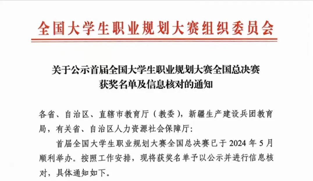 近日,首届全国大学生职业规划大赛全国总决赛结果公布,我院学生曹瑞祥、教师杨丽娟分获成⻓赛道、大学生职业发展与就业指导课程教学赛道职教组国家级铜奖。