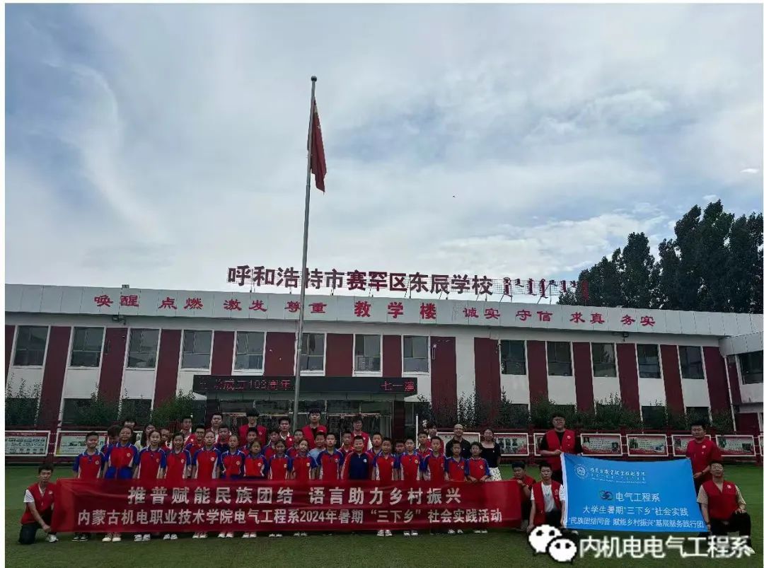为切实发挥高校民族团结教育的帮扶作用,按照学院有关精神,我院电气工程系“民族团结同音 赋能乡村振兴”基层服务践行团于2024年7月走进呼和浩特赛罕区东辰学校,开展阅读红色经典、成长交流分享和特色书法课程教育关服务实践活动,充分发挥广大青年学生自身的知识和技能,在乡村振兴教育帮扶中展现青春活力。