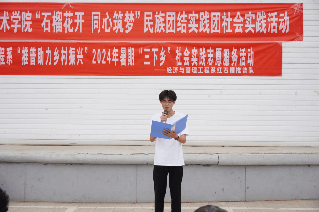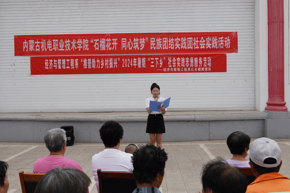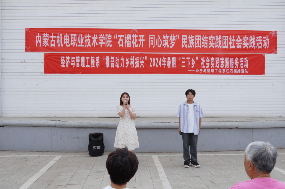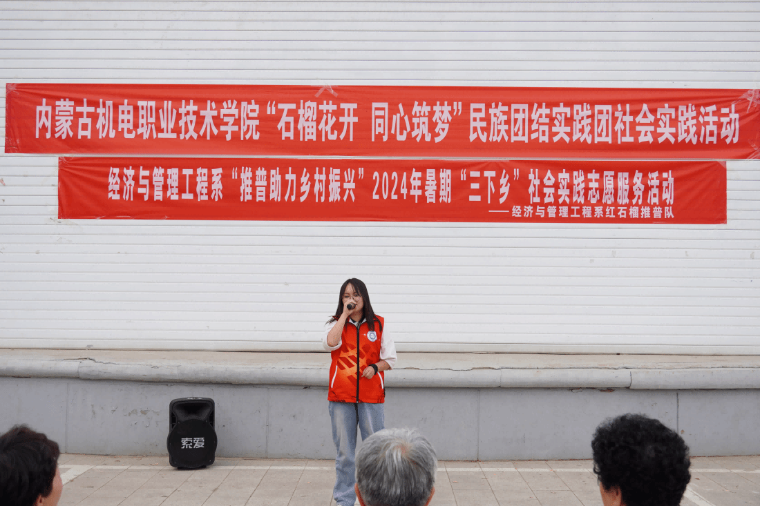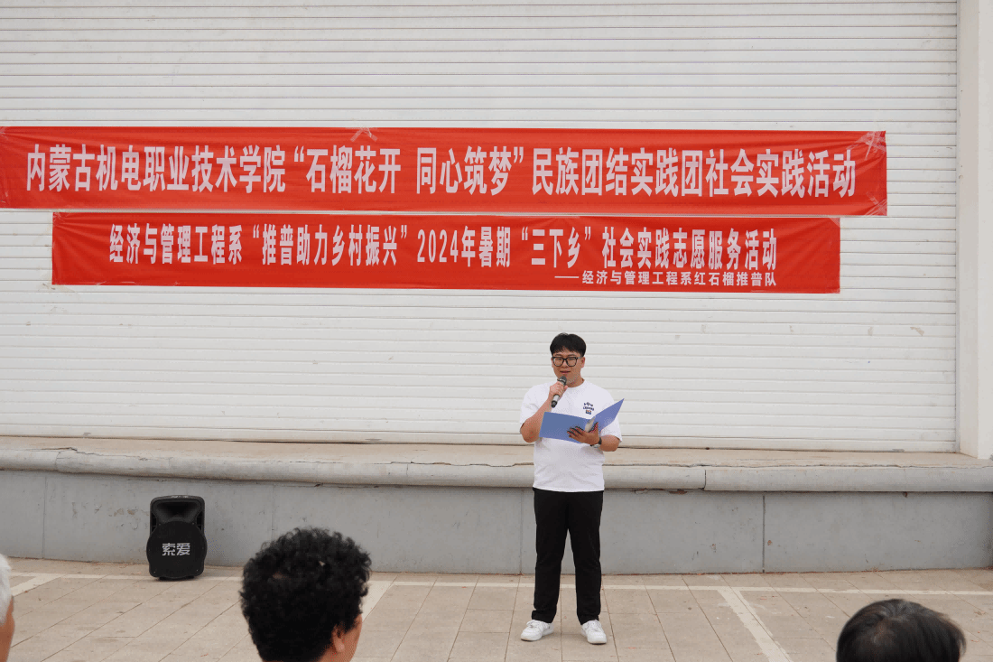 为铸牢中华民族共同体意识,推广普通话助力乡村振兴,近日,我院经济与管理工程系红石榴推普队联合学院团委前往呼和浩特赛罕区乔家营村开展“推普助力乡村振兴”暑期“三下乡”社会实践志愿服务活动,立足当地特色,发挥青年大学生的专业优势开展推普助力乡村振兴系列活动。