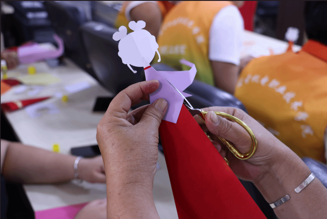 实践团第四站来到纳文慕仁社区哈尼卡传习所名家工作室,体验哈尼卡剪纸技艺,在“哈尼卡”传承人的指导下,学生们用剪纸工具和彩纸,亲自体验制作各具特色的哈尼卡纸偶。