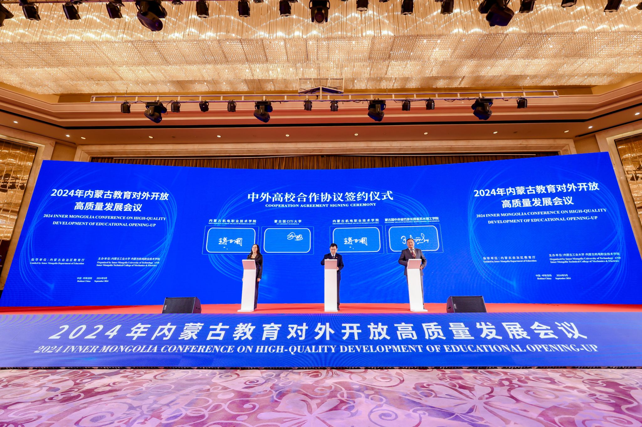 9月27日上午,2024年内蒙古教育对外开放高质量发展会议在呼和浩特召开。本次会议由内蒙古自治区教育厅指导,内蒙古工业大学、内蒙古机电职业技术学院共同主办,设高等教育和职业教育两个分会场。会议旨在落实共建“一带一路”倡议和服务国家向北开放重要桥头堡建设,发挥内蒙古自治区对俄蒙国际合作的区位优势,搭建自治区教育国际交流合作平台,提升自治区教育国际交流水平。出席会议开幕式的国内外院校专家学者共200余人。