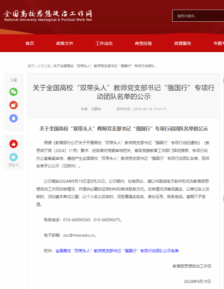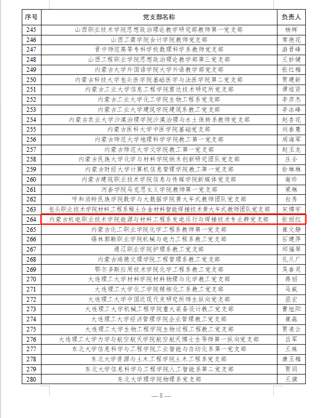 2024年9月20日-25日,教育部公示了《全国高校“双带头人”教师党支部书记“强国行”专项行动团队名单》,学院能源与材料工程系党总支发电运行与焊接技术专业群党支部书记张丽红成功入选全国高校“双带头人”教师党支部书记“强国行”专项行动团队名单。