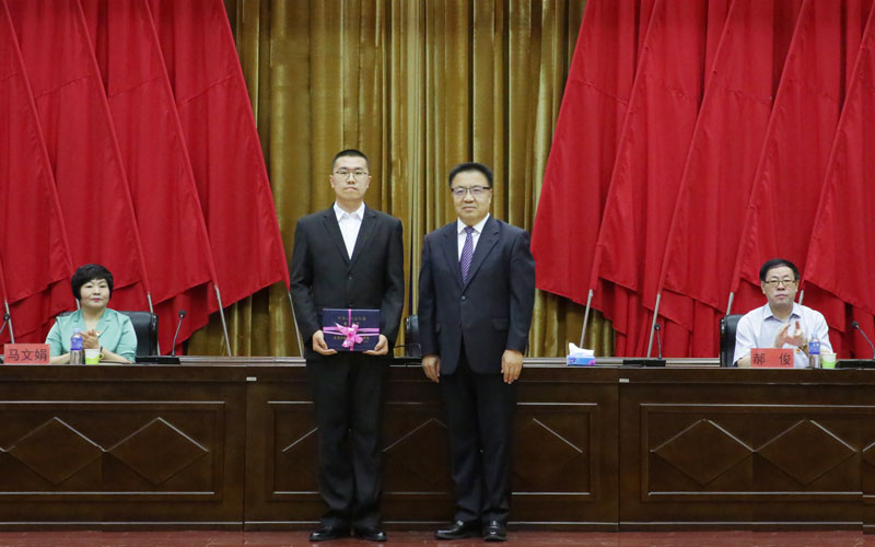 李文科院长为2021届毕业生代表分别颁发毕业证书、“三好学生”、“优秀学生干部”和“优秀毕业生”荣誉证书。
