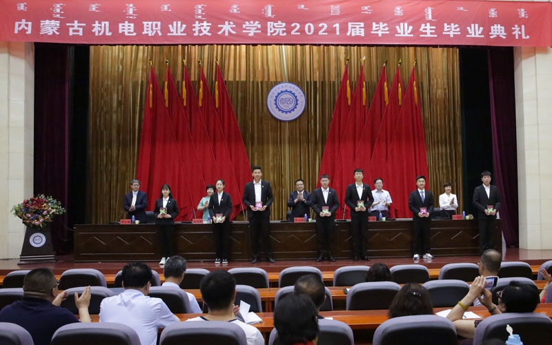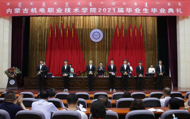典礼上,学院教务处副处长李振甲宣读《内蒙古机电职业技术学院关于2021届毕业生准予毕(结)业的决定》。学生工作处处长刘志文宣读《关于表彰2020-2021学年度自治区普通高等学校“三好学生”、“优秀学生干部”及“优秀毕业生”的决定》。电气工程系工业过程自动化技术1801班刘云作为毕业生代表、经济与管理工程系会计1902班刘蓓作为在校生代表、机电工程系吕名伟老师作为教师代表分别作了发言。