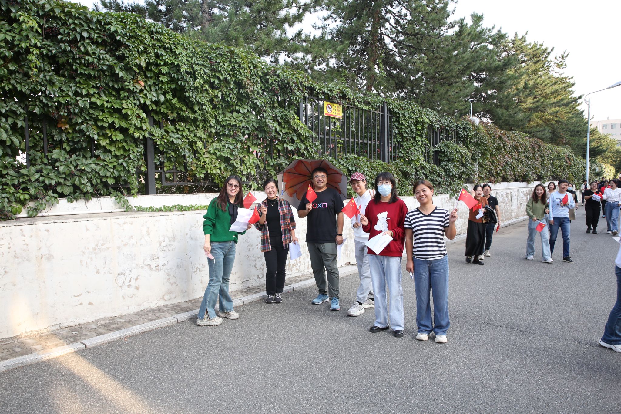 活动在熟悉动听的旋律中开启。教职工们手持红旗,用共同唱响歌曲《我和我的祖国》的实际行动抒发对祖国母亲的由衷热爱和真挚祝福。