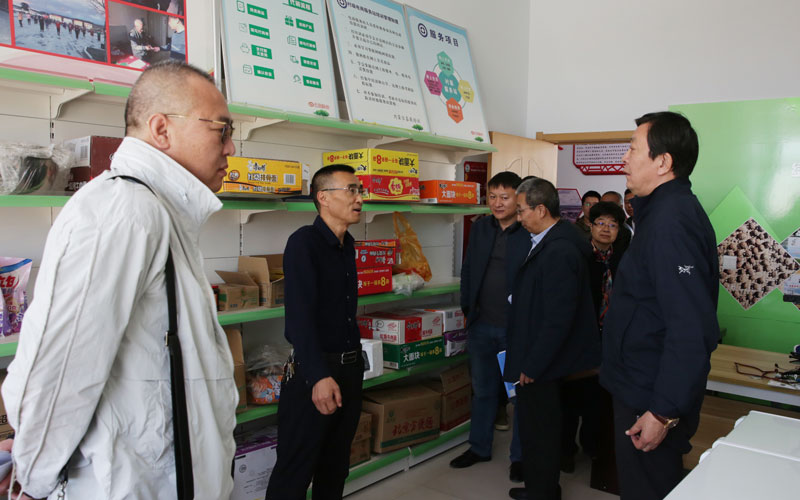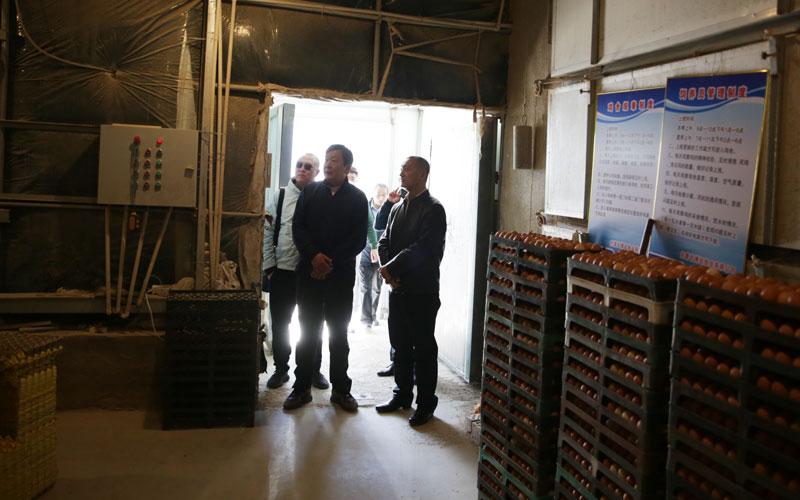 李永义书记一行在陈治国镇长陪同下参观了土牧尔台镇现代化运营的大型养鸡场项目、新建村大棚种植香菇项目和村里的党员活动中心、爱心超市、村民文化活动室等,还看望慰问了学院驻村干部。