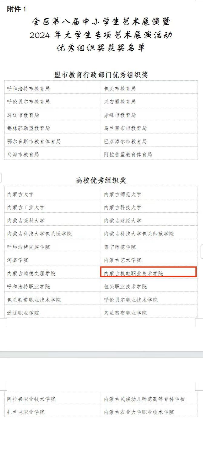 10月21日,全区第八届中小学生艺术展演暨2024年大学生专项艺术展演活动公布获奖名单,学院荣获优秀组织奖。