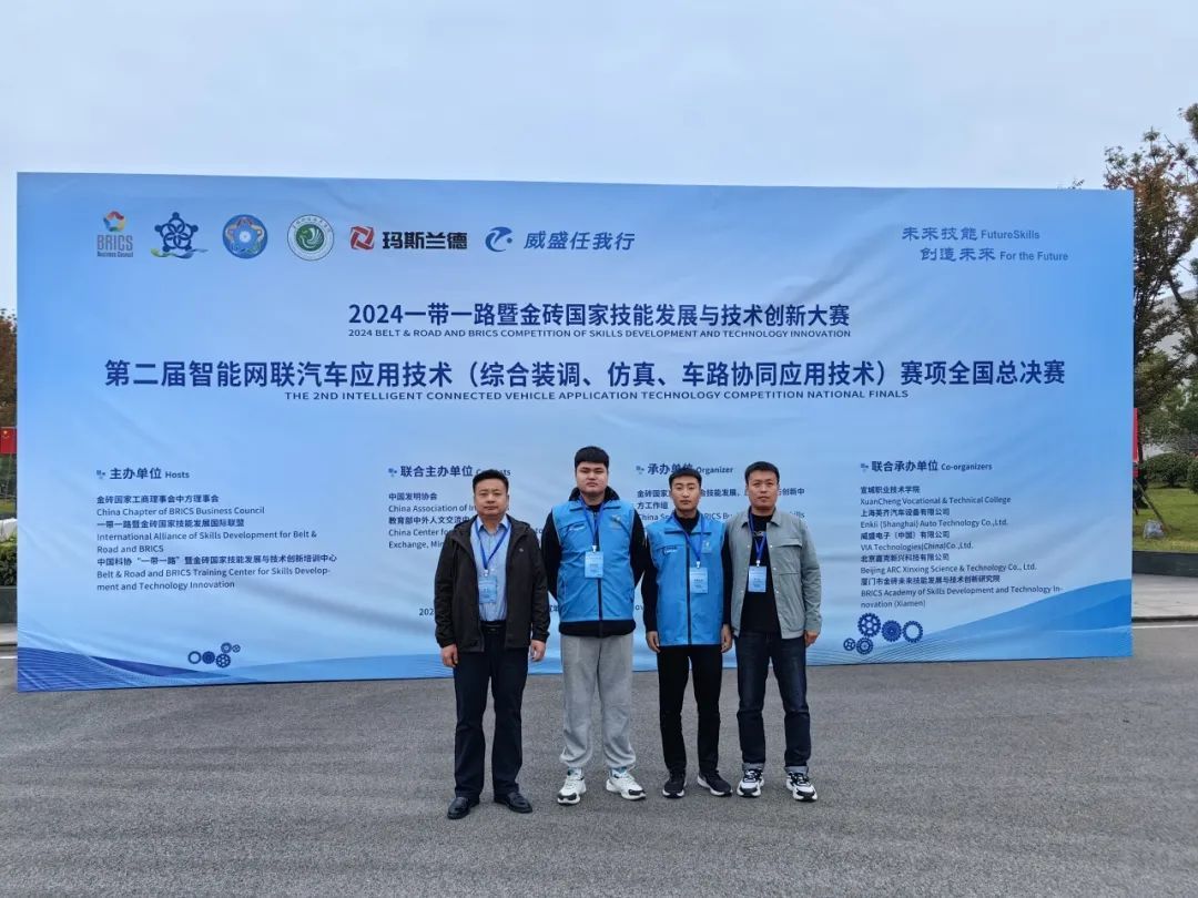 10月30日至11月2日,2024一带一路暨金砖国家技能发展与技术创新大赛之第二届智能网联汽车应用技术(综合装调、仿真、车路协同应用技术)赛项全国总决赛在宣城职业技术学院举行。本次赛事共吸引全国25个省、自治区、直辖市的178所单位、302支队伍参加。经过激烈角逐,学院车辆工程系教师吴政、韩冰指导的学生薄宇、史硕凯获二等奖。