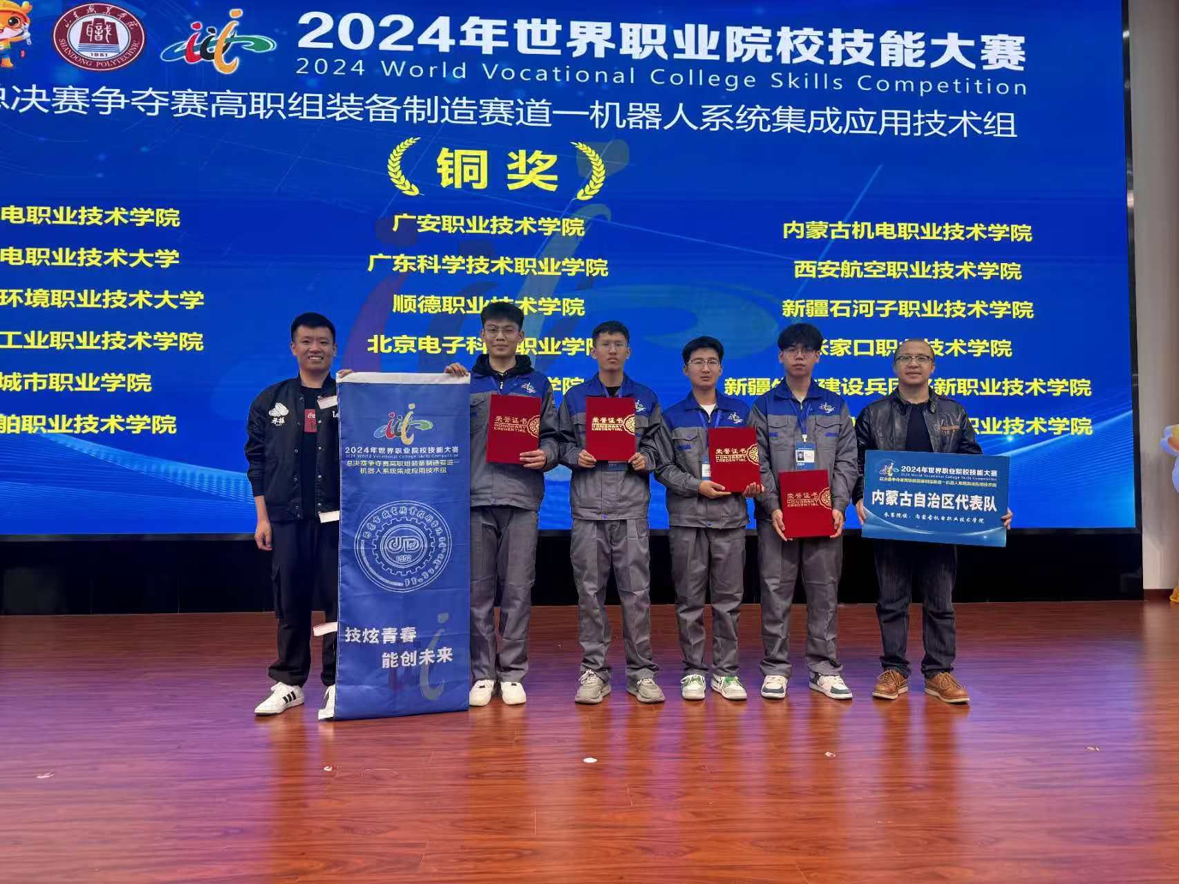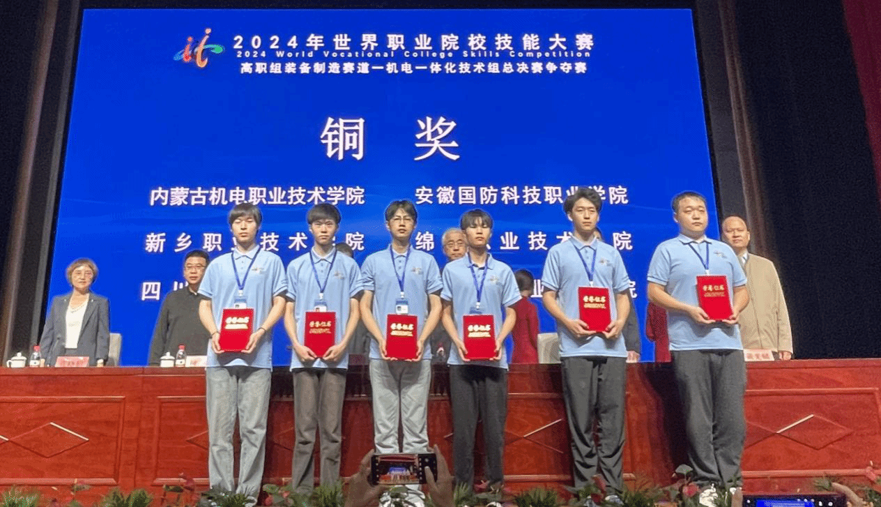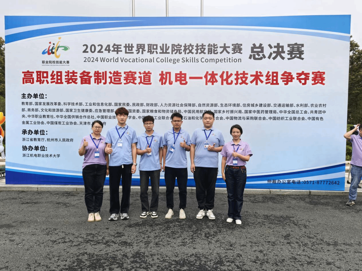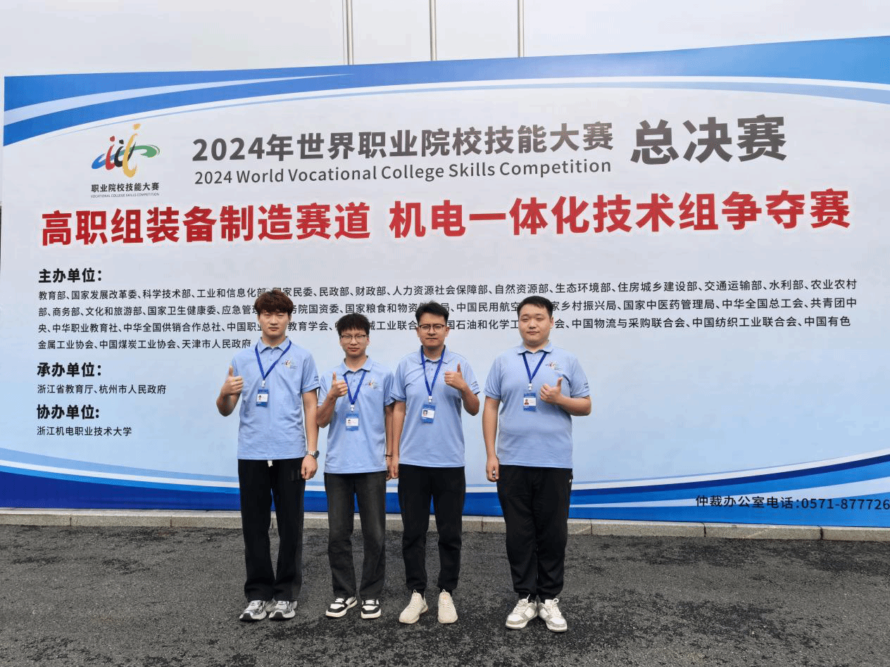 10月28日,2024年世界职业院校技能大赛总决赛高职组装备制造赛道机电一体化技术组争夺赛在浙江机电职业技术大学圆满落幕。来自全国30个省、自治区、直辖市的60所职业院校的参赛团队同台竞技。学院机电工程系教师王京、刘引弟指导的学生武昊旭、高旭、刘宇博和刘泽龙荣获铜奖。