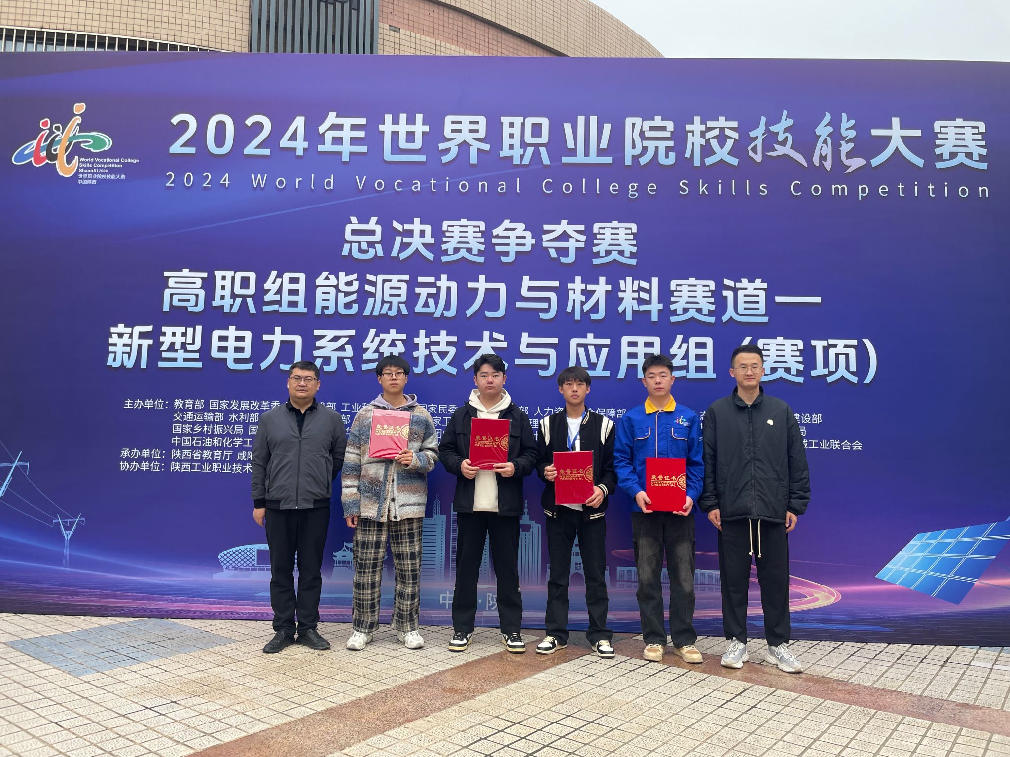 10月28日,2024年世界职业院校技能大赛总决赛争夺赛高职组能源动力与材料赛道一新型电力系统技术与应用赛项在陕西工业职业技术学院举行,来自全国的60支参赛队伍参加比赛。学院电气工程系教师赵彦层、贺敬指导的学生韩硕、潘浩然、李昊哲和胡金贵荣获铜奖。