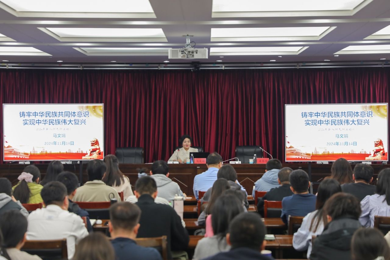 学院聚焦“铸牢中华民族共同体意识”主线,组织开展形式多样、内涵丰富的入职教育活动。副院长马文娟为新入职教师开展《铸牢中华民族共同体意识,实现中华民族伟大复兴》的专题讲座,详细阐述自治区在落实“五大任务”和全方位建设“模范自治区”两件大事中的积极作为。