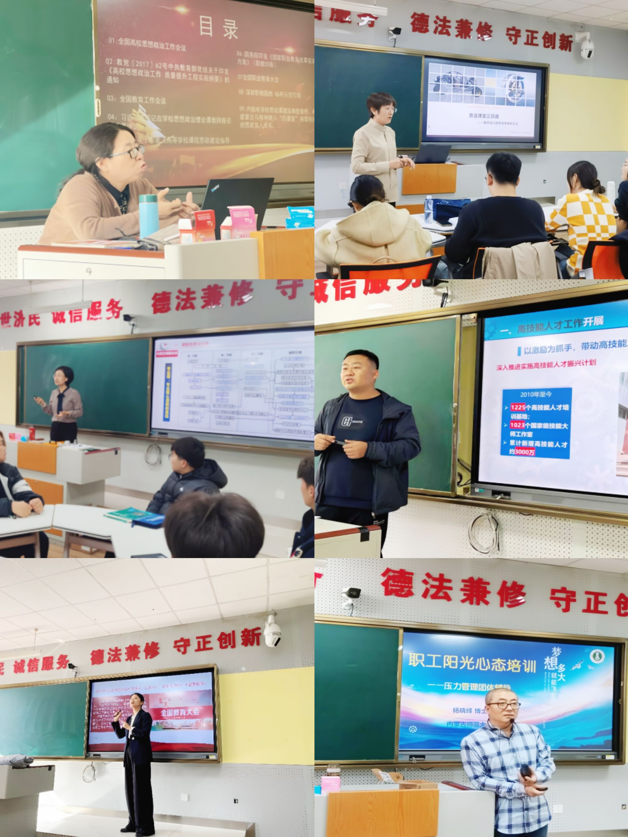 邀请我院马克思主义学院主任郑云宏、机电工程系教师成图雅、全国模范教师雷彪、内蒙古工业大学裴承慧教授、全国高校辅导员年度人物沈晓倩以及内蒙古师范大学心理学院杨晓峰副教授等优秀模范教师进行专题授课,帮助新入职教师从站稳讲台到站好讲台的过程中,圆满完成教育教学经验与能力的“原始积累”。
