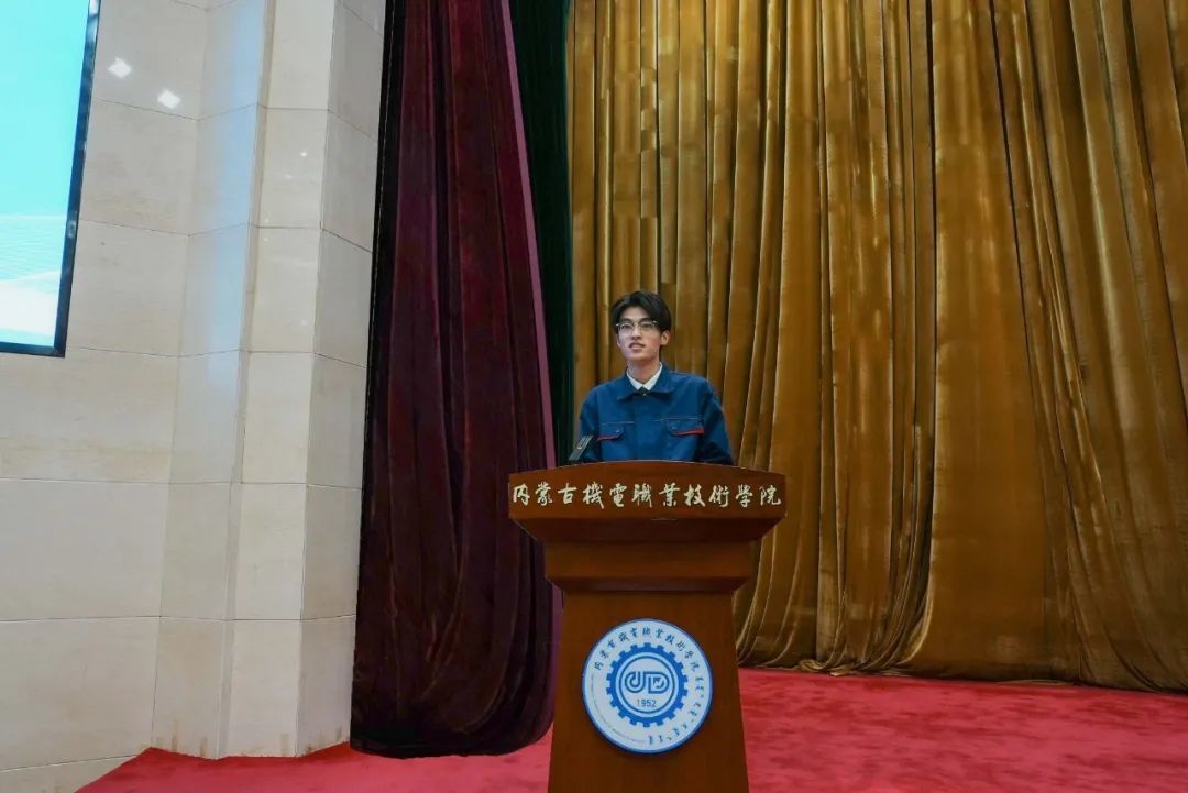 中国兵器工业集团有限公司首席技师赵晶和学院经济与管理工程系学生分别代表裁判员和参赛选手进行了庄严宣誓。