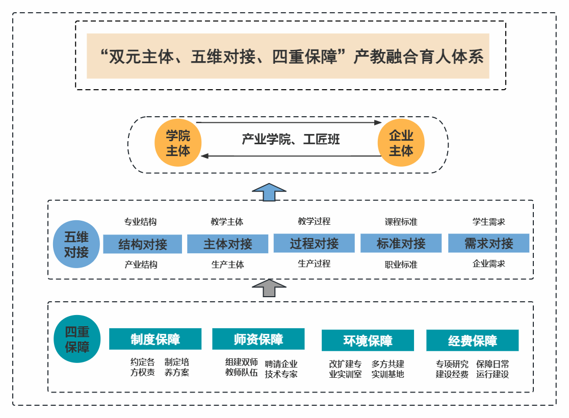 图1 “双元主体、五维对接、四重保障”产教融合育人体系