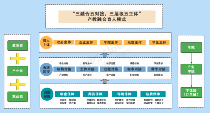 图1 “三融合五对接,三层级五主体”产教融合育人模式